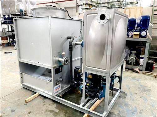 密閉式冷卻塔,簡(jiǎn)稱閉式冷卻塔,(也叫蒸發(fā)式空冷器,封閉式冷卻塔)將管式換熱器置于塔內(nèi),通過流通的空氣、噴淋水與循環(huán)水的熱交換保證降溫效果。由于是閉式循環(huán),其能夠保證水質(zhì)不受污染,很好的保護(hù)了主設(shè)備的運(yùn)行,提高了使用壽命。外界氣溫較低時(shí),可以停掉噴淋水系統(tǒng),起到節(jié)水效果。推著國(guó)家節(jié)能減排政策的實(shí)施和水資源的日益匱乏,近幾年密閉式冷卻塔在冶金、航空、電力、化工、機(jī)械、石油、食品、塑料、橡膠等等行業(yè)得到了廣泛的應(yīng)用。