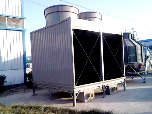 特點(diǎn):風(fēng)的流向(由下向上):風(fēng)由盤管冷卻器底部的四面進(jìn)風(fēng)口進(jìn)入,然后流經(jīng)盤管冷卻器吸收熱量后由風(fēng)機(jī)排到冷卻塔上方空氣中。